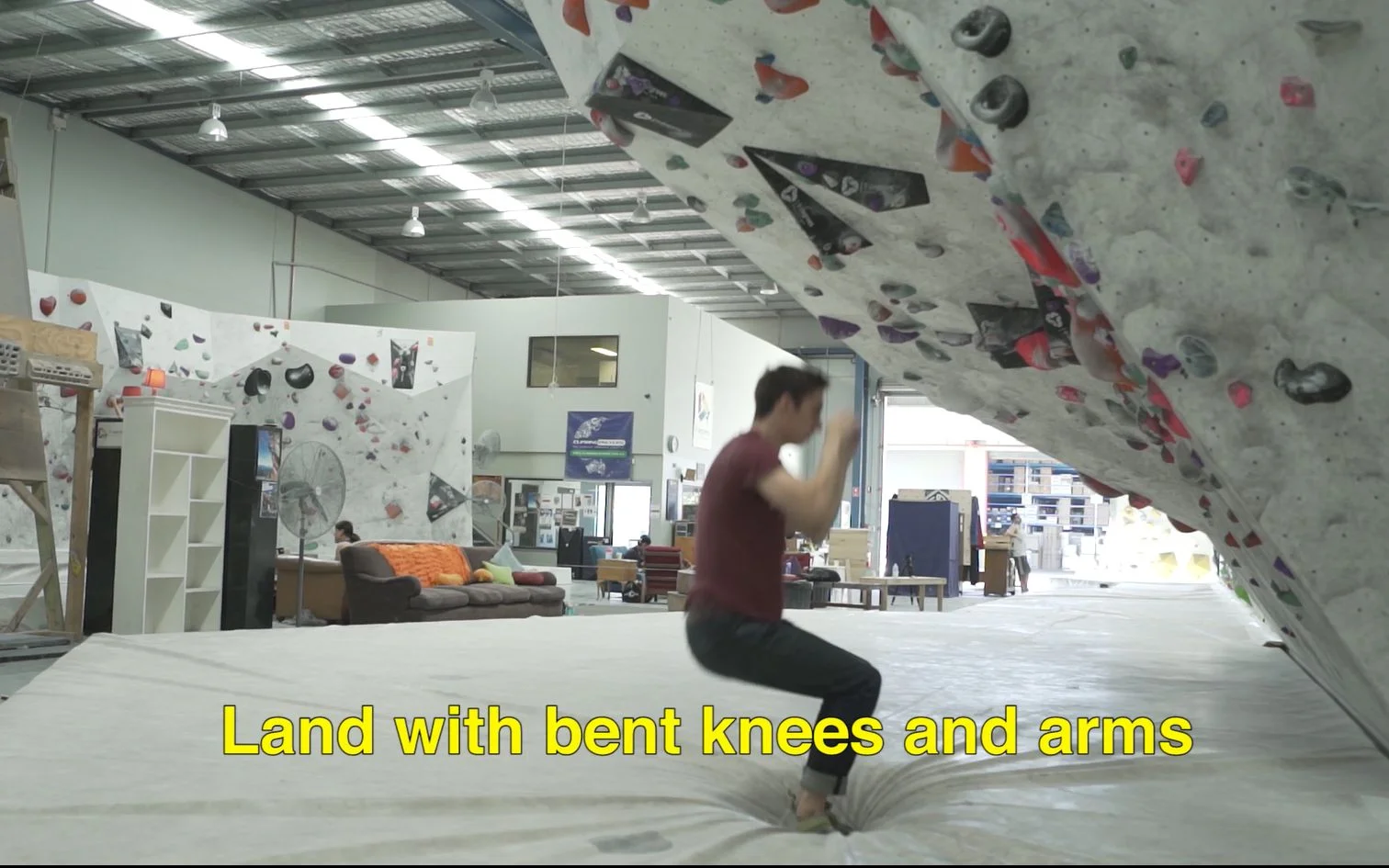 Falling is an integral part of bouldering, especially when attempting challenging climbs. That does not mean that one simply lets go and hopes for the best. At all times a climber must be mentally prepared for a fall and have a good sense of the risks involved. Every time you land on the mats there is a risk involved. This risk must always be reduced as much as possible by the participant. Never attempt anything that feels unsafe or uncontrolled. When you are concerned about a potential fall, discuss the risks with someone experienced, and ask them to spot you before you start the climb. General rules for safety and controlled falling are: